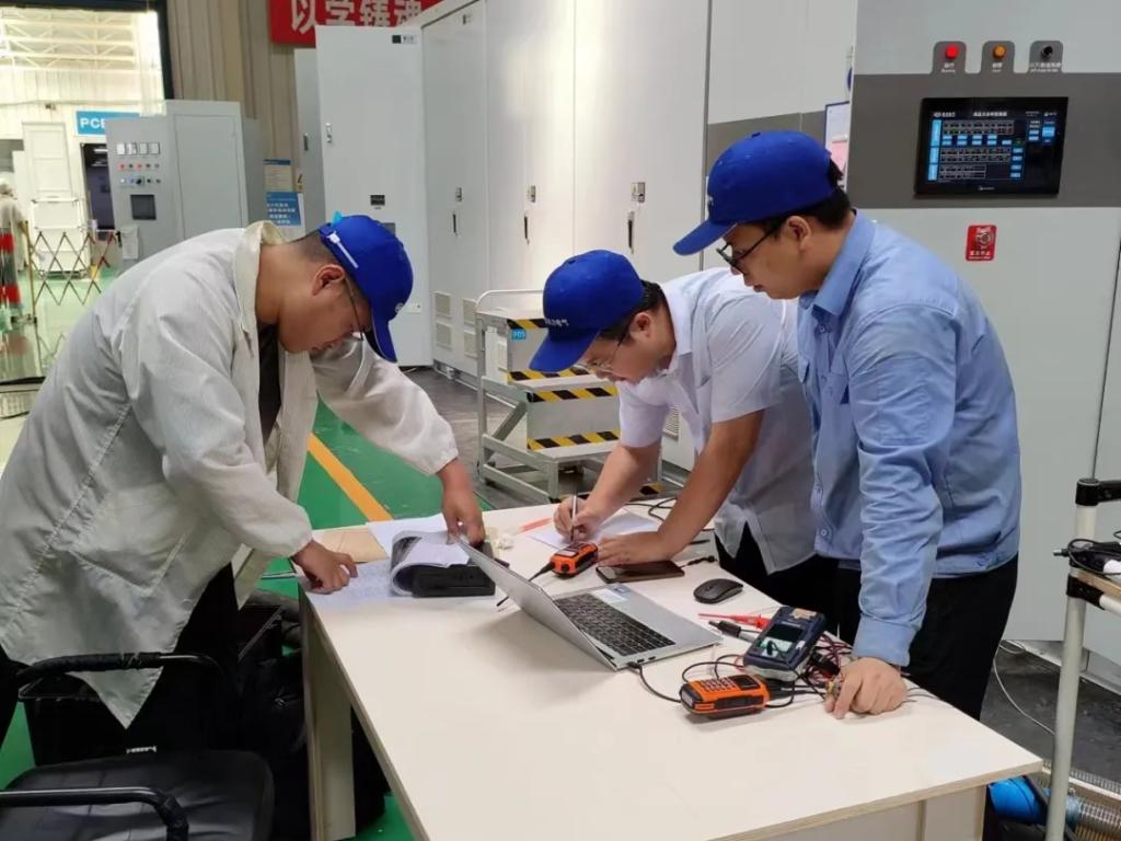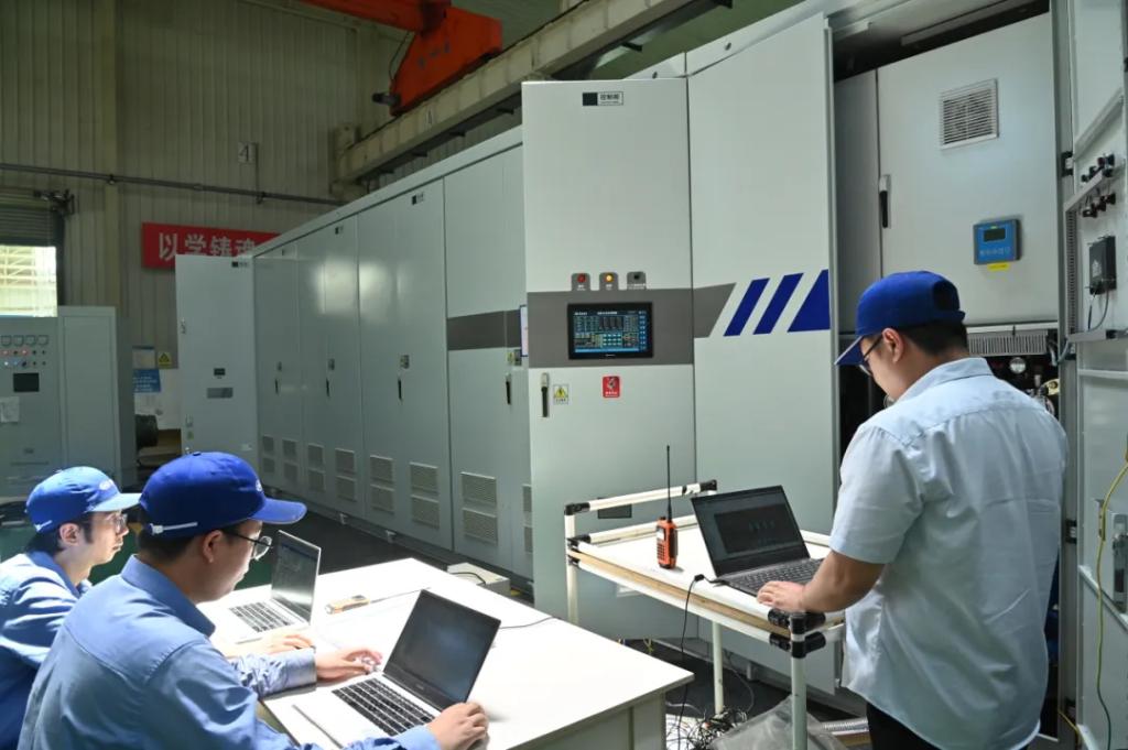 今年5月,在完成22兆伏安水冷型高压变频器调试后,现场欢呼不断,团队成员都在对即将到来的交付充满期待。