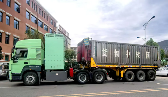 本次试车的49吨氢燃料电池牵引车,使用了尊龙时凯人生就搏电气集团自主研发的高效率200千瓦燃料电池系统,配套建设了自主研发的适应于可再生能源波动电源的PEM水电解制氢系统和高压气态储氢加氢系统,构建起完整的“制氢-储氢-加氢-氢交通”应用闭环,具备零碳排放、高海拔高寒环境适应性强、车辆续航里程长、动力性能强劲、驾驶舒适性佳等优势。